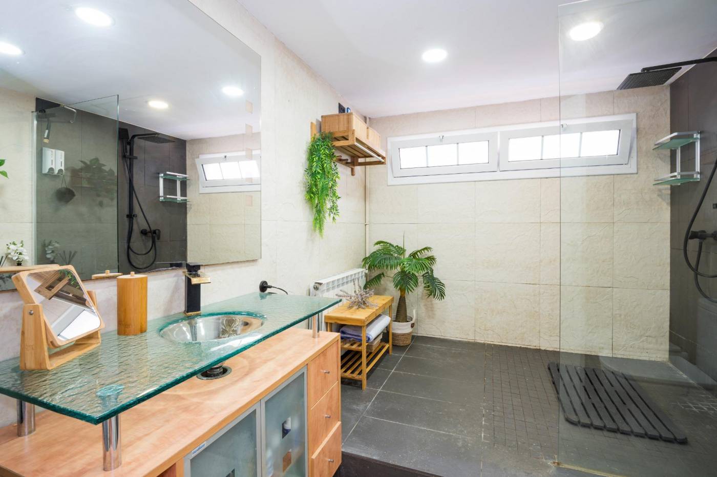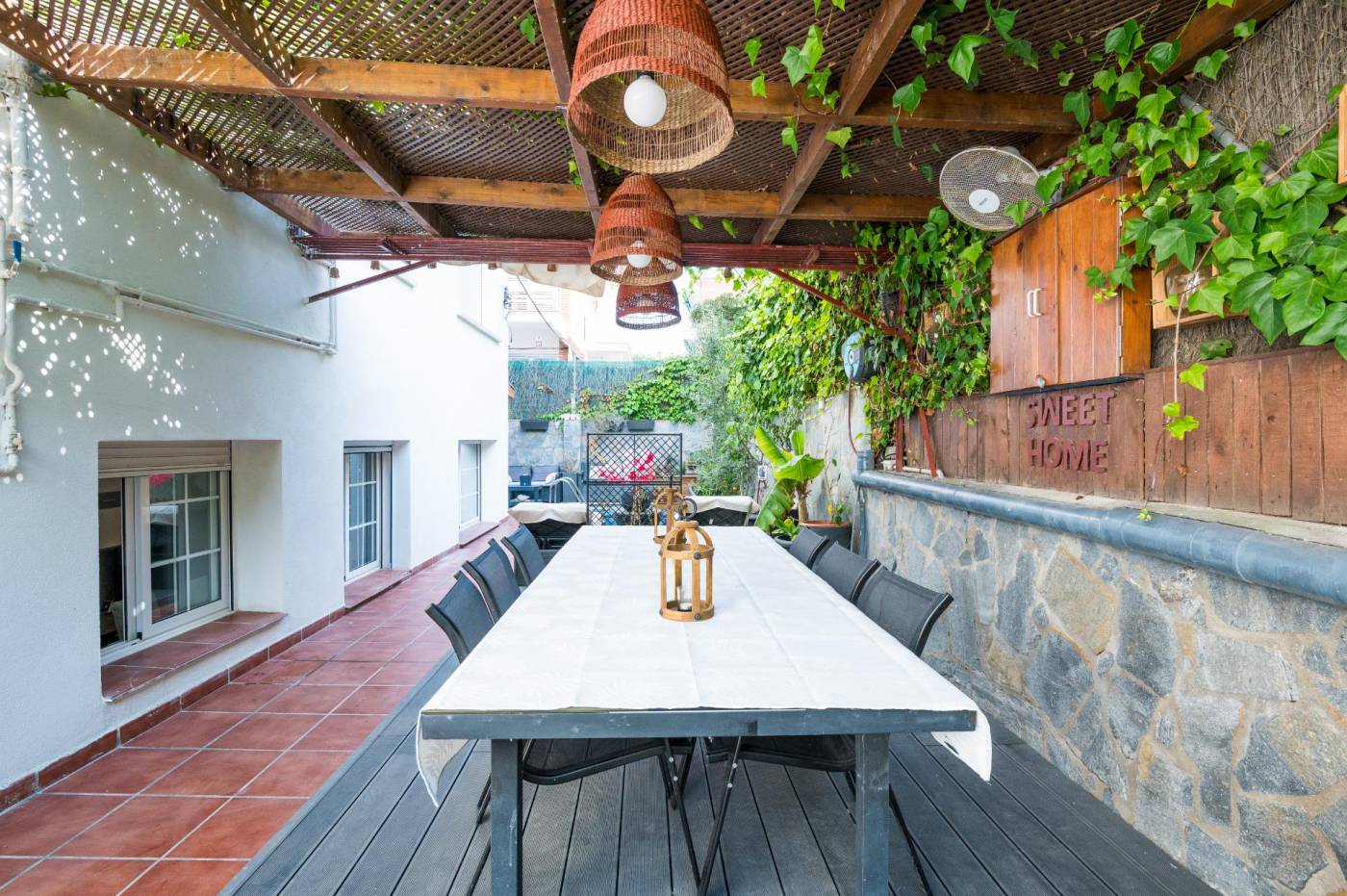 Propietat singular al cor del Vinyet.~Situada en una de les zones més exclusives de Sitges, aquesta lluminosa planta baixa ofereix comoditat, amplitud i estil en un entorn tranquil i residencial.~~Disposa de quatre dormitoris dobles, ideals per a famílies o per a qui busca espai addicional per a convidats, despatx o sala polivalent. Compta amb dos banys complets amb dutxa, moderns i funcionals.~~La cuina àmplia està integrada amb la zona de saló-menjador, creant un espai de dia obert i acollidor, perfecte per al dia a dia i per rebre visites.~~A més, destaca per la seva gran capacitat d’emmagatzematge, un valor afegit difícil de trobar en habitatges similars.~~Una propietat única per la seva mida, distribució i ubicació privilegiada, a pocs minuts del mar i del centre de Sitges.~~Però el que realment fa única aquesta propietat són els seus més de 150 m² d’espai exterior privat, perfectament dissenyats per gaudir del clima mediterrani tot l’any.~En aquest espai s’hi troben diferents zones: piscina privada, menjador exterior amb barbacoa, zona d’aparcament… imprescindible i molt valorat a la zona.~~Una propietat que combina comoditat, privacitat i estil de vida mediterrani, en una de les zones més exclusives de Sitges.~~Ideal com a residència habitual, segona residència o inversió.