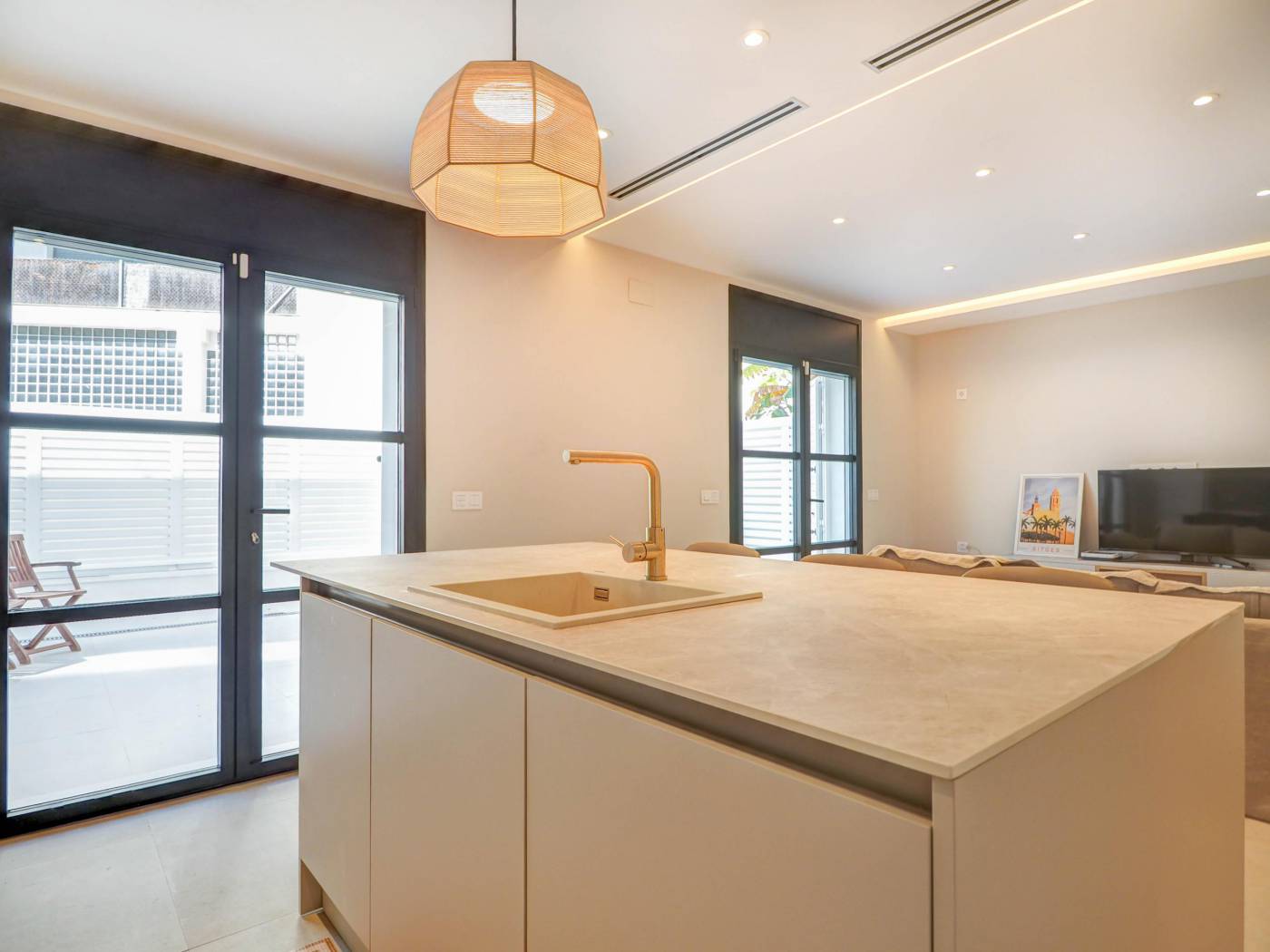 Exclusiva Planta Baixa Dúplex en Venda a Sitges – Segona Línia de Mar~~Descobreix aquesta meravellosa planta baixa dúplex, completament reformada amb materials de la més alta qualitat, dissenyada per una gran interiorista i arquitecta. Una propietat única que combina elegància, confort i una ubicació immillorable a la cobejada zona de la platja de Sant Sebastià, a Sitges. A tan sols uns passos del mar... Compta amb cinc àmplies habitacions i cinc banys, tres d'ells en suite, oferint privadesa i comoditat per a tota la família o convidats. El cor de l'habitatge és un ampli saló que s'obre a una generosa terrassa a nivell, perfecta per gaudir del clima mediterrani durant tot l'any.