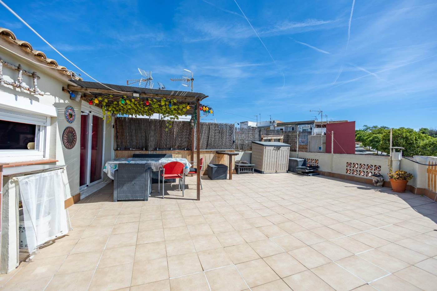 Situat a Les Roquetes, davant de la tranquil·la zona residencial de Les Llunes, trobem aquest pis singular que combina comoditat interior amb una terrassa espectacular de 50 m² al terrat d´ús exclusiu. Una llar plena d'encant, pensada per als qui gaudeixen tant de l'interior com dels espais a l'aire lliure. L'habitatge ocupa la primera planta d'un edifici cantoner amb només dos veïns, cosa que garanteix tranquil·litat i privadesa. Els seus 95 m² es distribueixen en un saló menjador amb sortida a un balcó ampli i lluminós, dues habitacions dobles acollidores, una cuina independent amb una pràctica despensa i un bany de grans dimensions. En ser tot exterior excepte les habitacions, la llum natural i les vistes clares són protagonistes durant tot el dia gràcies a la seva orientació sud. A la planta superior, l'habitatge sorprèn amb un estudi versàtil que s'adapta a teletreball, zona de jocs o racó creatiu. Amb ell, la bugaderia ofereix la practicitat necessària per al dia a dia. Però la veritable joia és a la terrassa privada de 50 m²: un espai obert i versàtil amb pèrgola i barbacoa, perfecte per a dinars en família, celebracions o simplement per relaxar-se sota el sol i gaudir de les nits d'estiu. i la Geltrú.~~Un habitatge amb caràcter, còmode i amb aquest plus d'espai exterior que converteix el dia a dia en alguna cosa especial.
