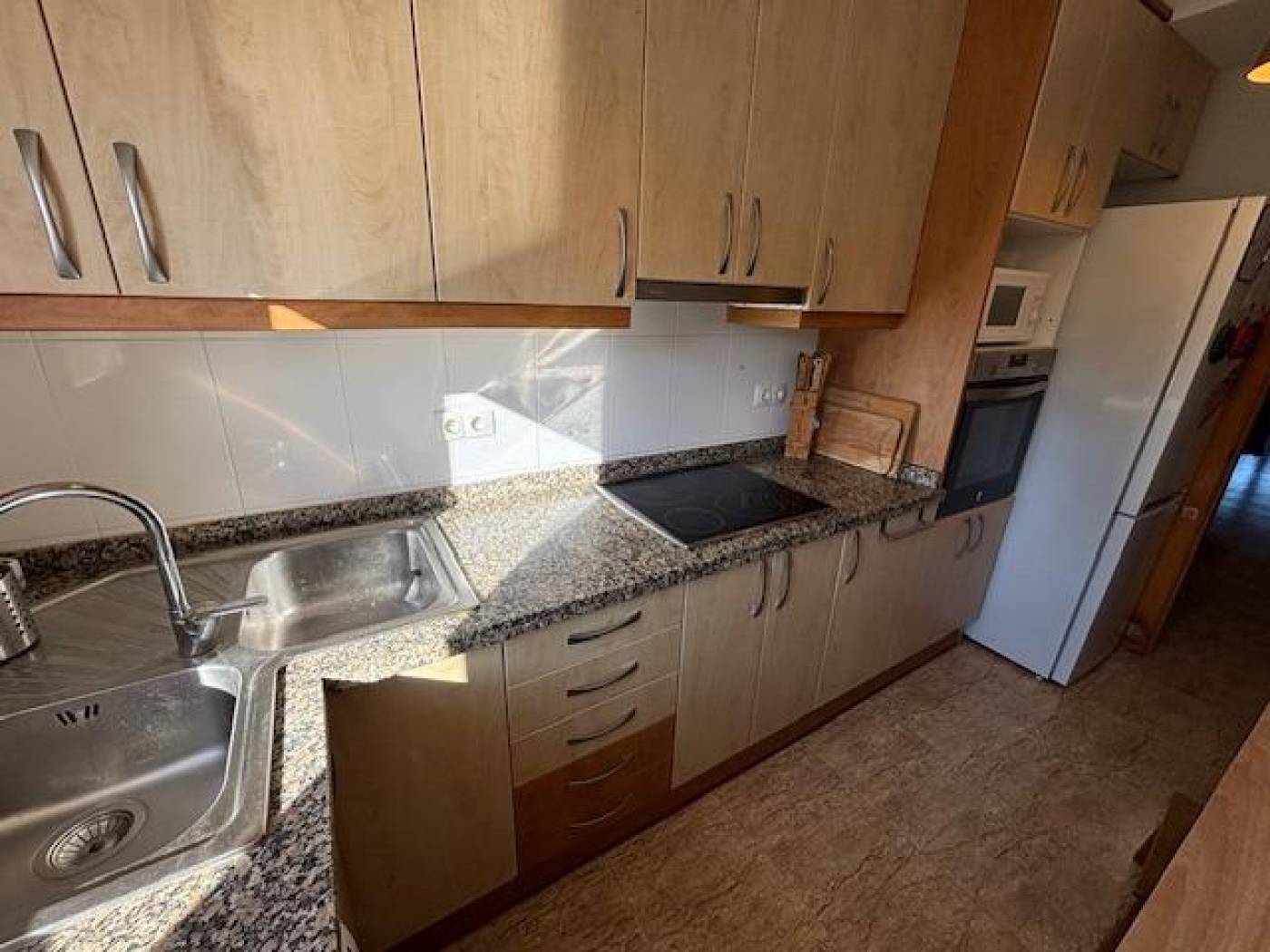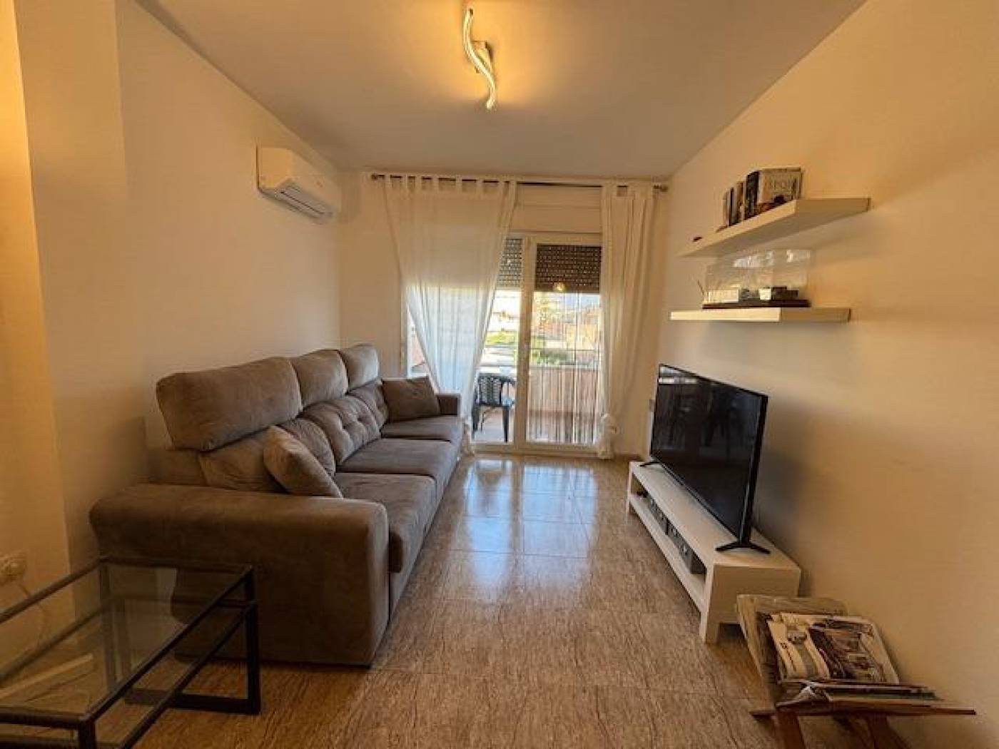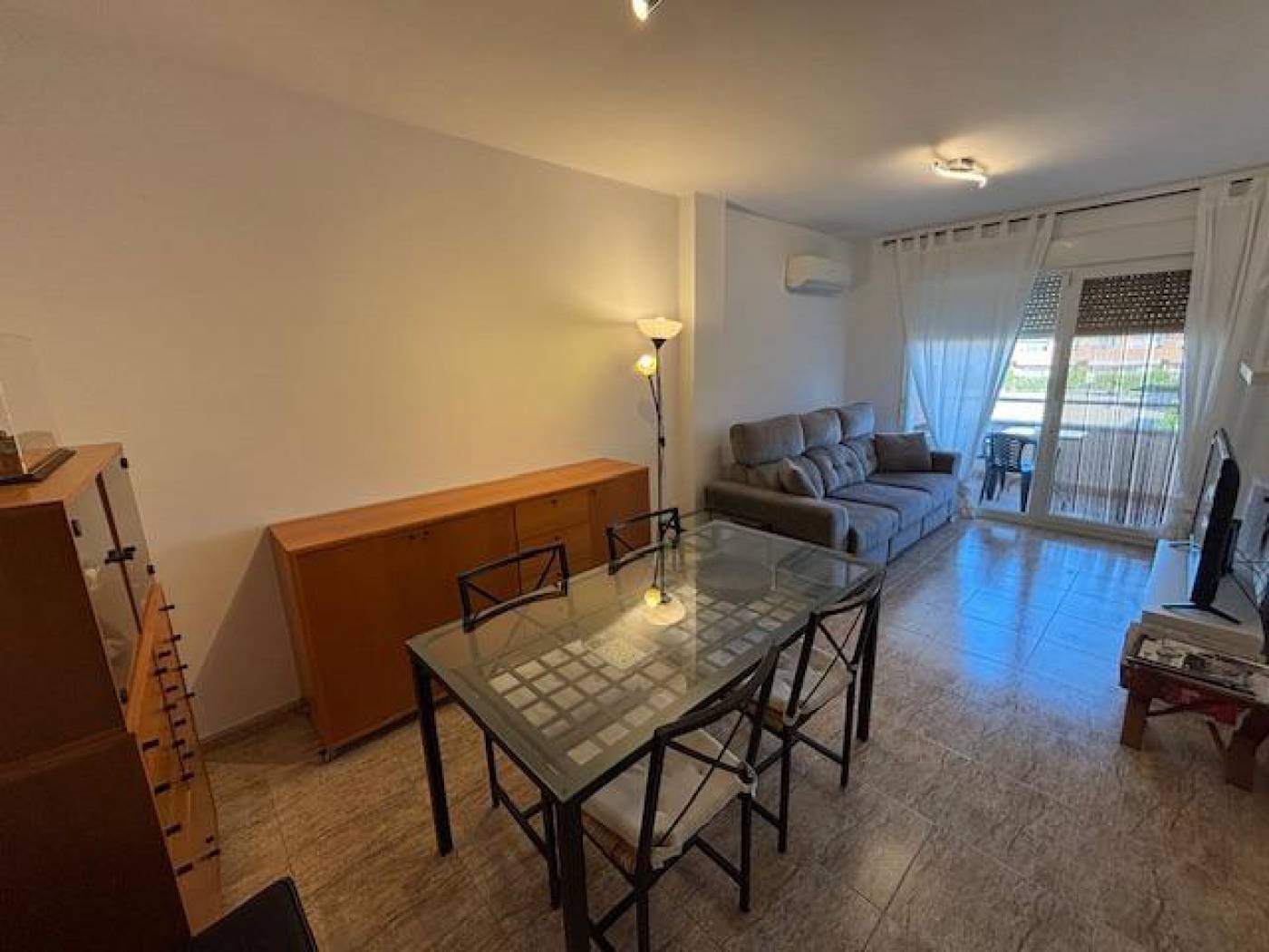We present this cozy apartment located in the Les Salines area in Cubelles, a few steps from the sea!!! ~~It is located on the first floor of a building with an elevator and consists of 75 m² in total, 62 m2 useful, distributed in 2 double and exterior bedrooms, 1 bathroom with a large shower, an outdoor kitchen, a large living room with access to a large balcony overlooking the communal area. ~~The house is integrated into a residential complex that has a magnificent communal area with a beautiful garden and a large swimming pool with showers, with access from the promenade on the first line of the sea in the emblematic municipality of Cubelles. ~~The house is equipped with stoneware floors, aluminum exterior carpentry, double glazing, beech interior carpentry, a reinforced door, 1 hot / cold AA split. The house faces east-west which provides a pleasant luminosity. The building offers, in addition to its communal garden and its magnificent swimming pool, a parking area. ~~The state of conservation of the apartment is good and it is ready to move into.