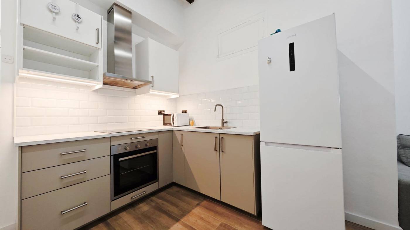 Discover this cozy apartment located in the heart of the city, ideal for those seeking comfort and a convenient location. ~Located on the first floor (no elevator)~The apartment has been completely renovated with modern finishes. ~Ideal as a first home or investment due to its excellent location and condition.~1 double bedroom~1 single bedroom~Living room with open, modern, and functional kitchen~1 full bathroom~Outdoor balcony with street views~~Area with all amenities: public transportation, shops, restaurants, and educational centers are just steps away.