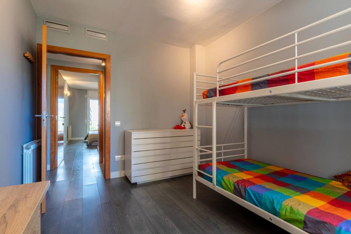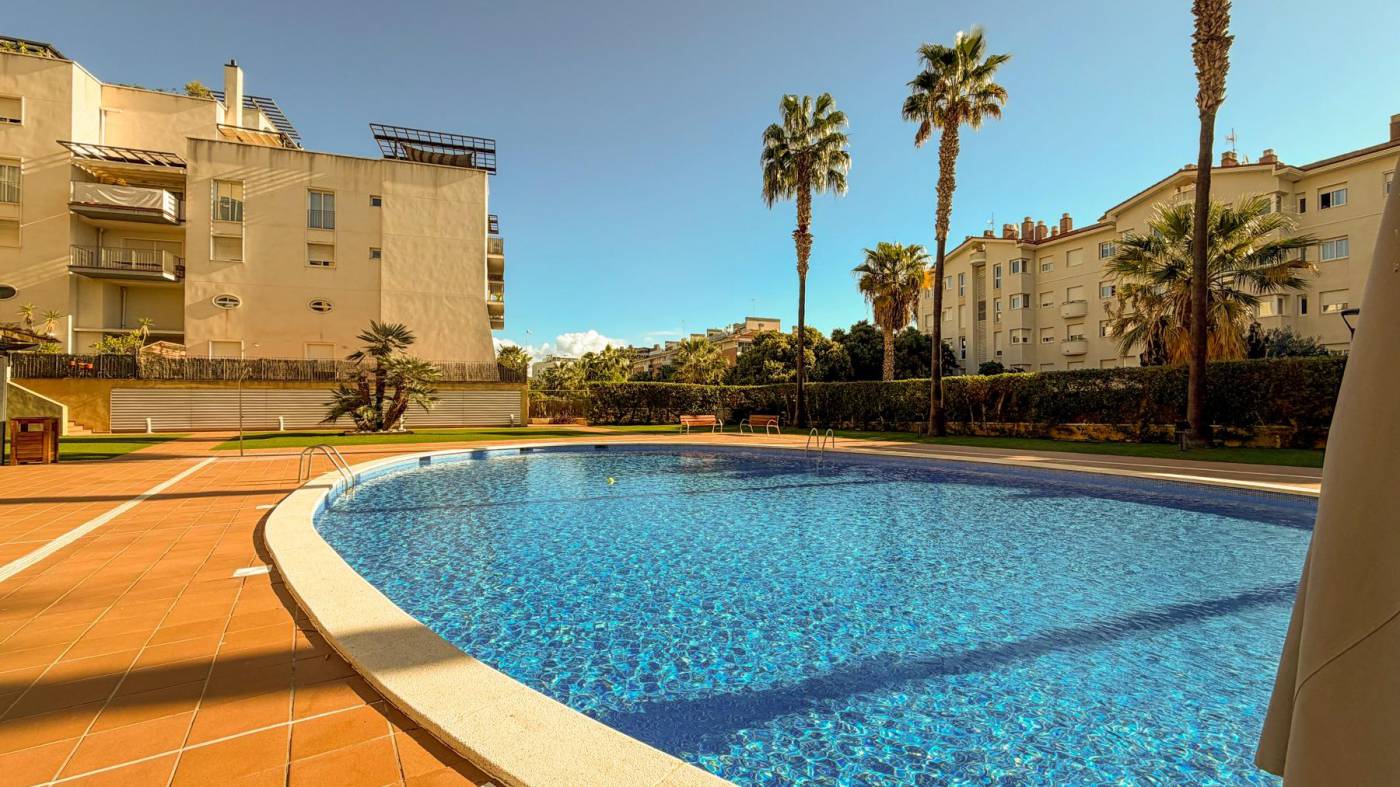 In Can Pei, one of Sitges' most residential and peaceful areas, you'll find this apartment offering comfort, spaciousness, and an ideal location to enjoy everyday life without sacrificing anything. This first-floor apartment boasts 119 m² of built area (80 m² usable space + 17 m² terrace) with a practical and well-thought-out layout. The very spacious living-dining room opens onto a terrace where you can create a relaxation area, a chill-out zone, and another area with a table perfect for enjoying summer dining and unwinding at the end of the day. The separate eat-in kitchen is spacious and comfortable, perfect for those who enjoy cooking or sharing meals with family. The sleeping area has three bedrooms: a master suite with an ensuite bathroom and built-in wardrobes, a double bedroom, and a single bedroom, plus a second full bathroom serving the rest of the apartment. It features pre-installation for ducted air conditioning, radiator heating, parquet and tile flooring, a private parking space, and a large storage room, perfect for storing anything you don't want in the house. The building has a communal swimming pool, concierge service, and 24-hour security with cameras. The area is quiet and has a supermarket, primary school, secondary school, and public transport nearby. In just 10 minutes' walk along Avenida Navarra you'll reach Terramar beach, and the center of Sitges is perfectly connected. And if you enjoy sports or strolling, the Garraf Natural Park begins just across the street, with paths winding through vineyards and offering spectacular views. A comfortable, well-located apartment with everything you need to enjoy life in Sitges with peace and convenience. Write to us now, we'll arrange a visit and you can discover for yourself that this apartment is perfect for you.