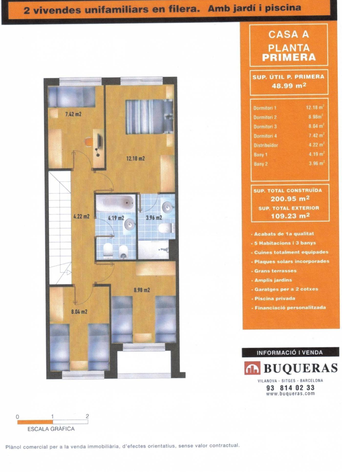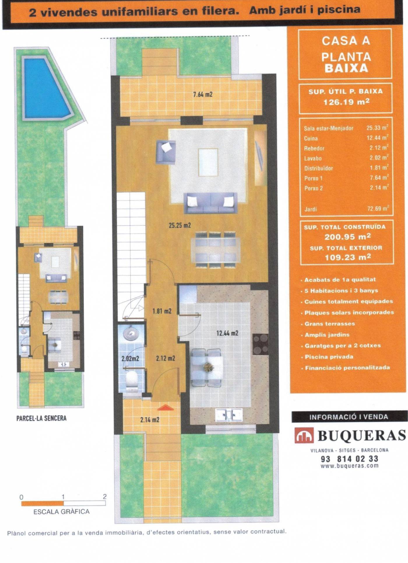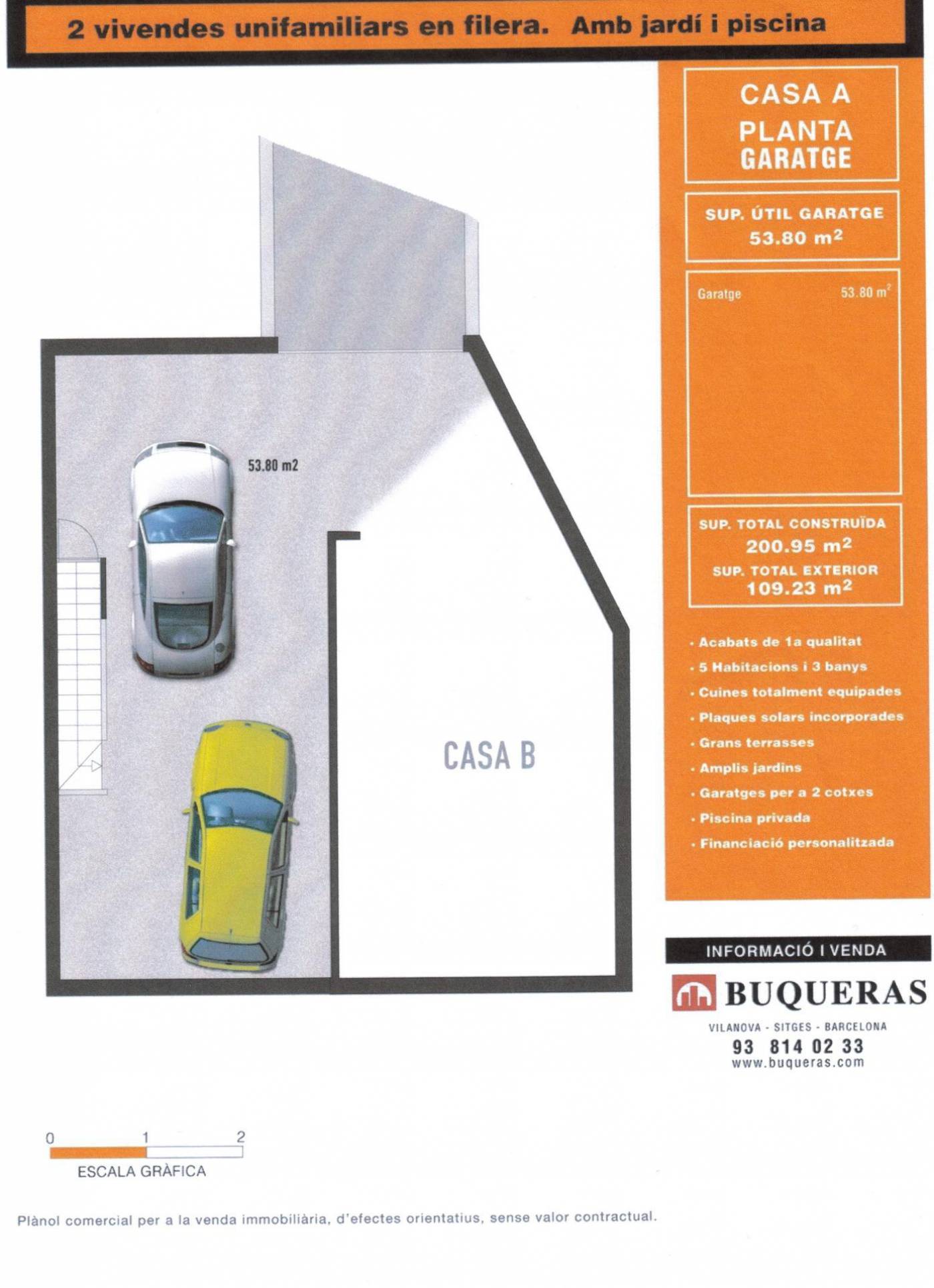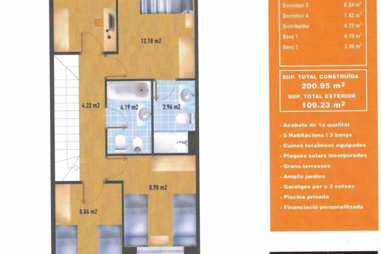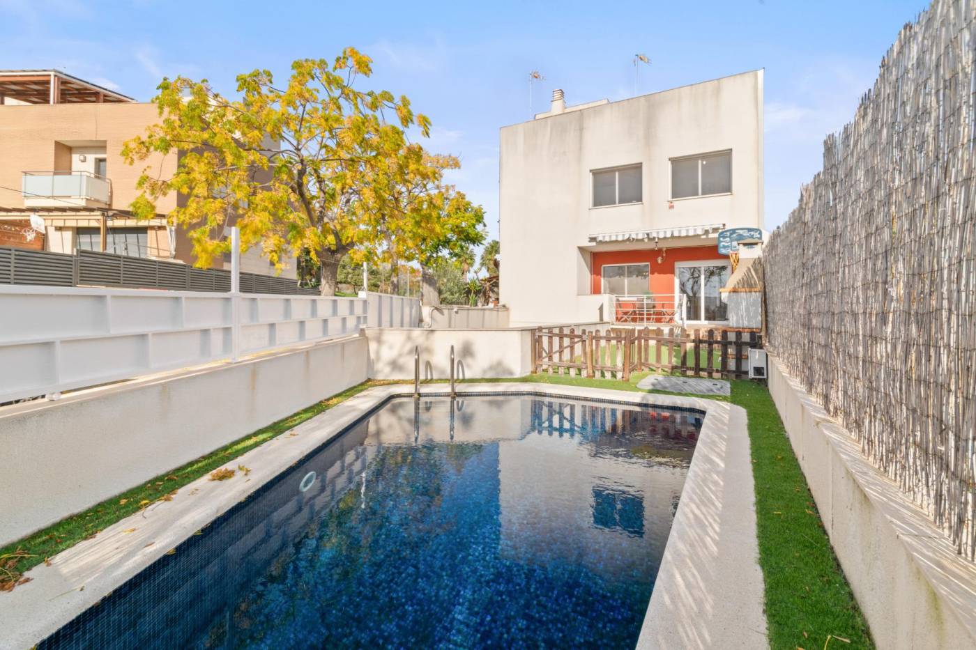 ~Detached house with swimming pool, sea views and private parking in Vilanova i la Geltrú (Fondu Sumella)~~Opportunity! Ideal family home, located in a quiet and well-connected area of Vilanova i la Geltrú.~~The house, partially renovated, has a floor area of 200 m² and is distributed over three floors:~~- *Ground floor*: Separate kitchen, guest toilet and living-dining room with direct access to the *private garden*, with *swimming pool*, barbecue area and unobstructed views.~~- *First floor*: *4 bedrooms* (3 doubles, one en suite, and 1 single) and a second full bathroom. This floor offers *sea views*.~~- *Top floor*: Open-plan multipurpose space, ideal as an office, games room or additional bedroom, with access to a *solarium-style terrace* with views.~~The property also has a *private garage for two vehicles*.~~A house with great potential, ideal for families looking for space, outdoor living, comfort and a good location.