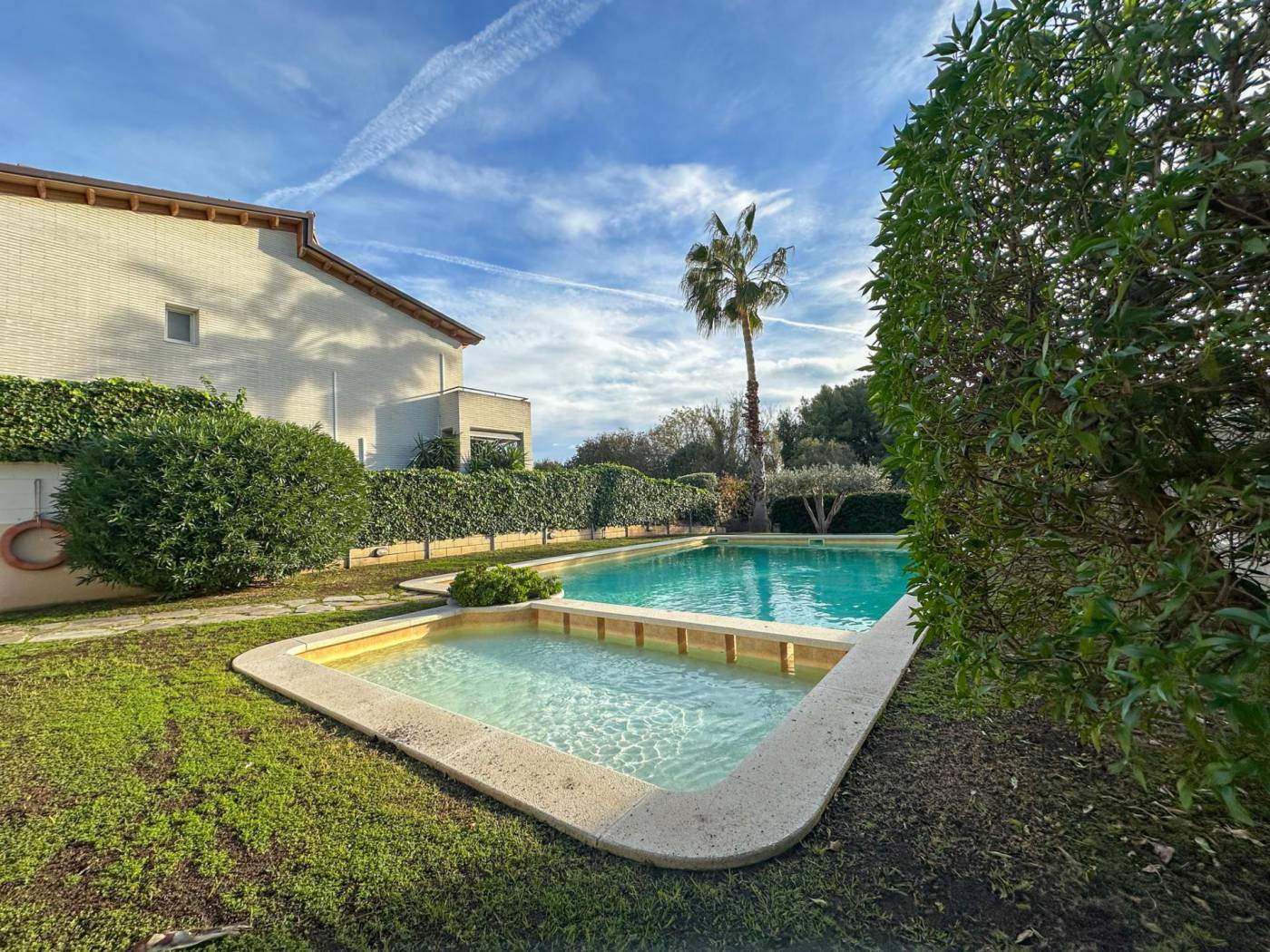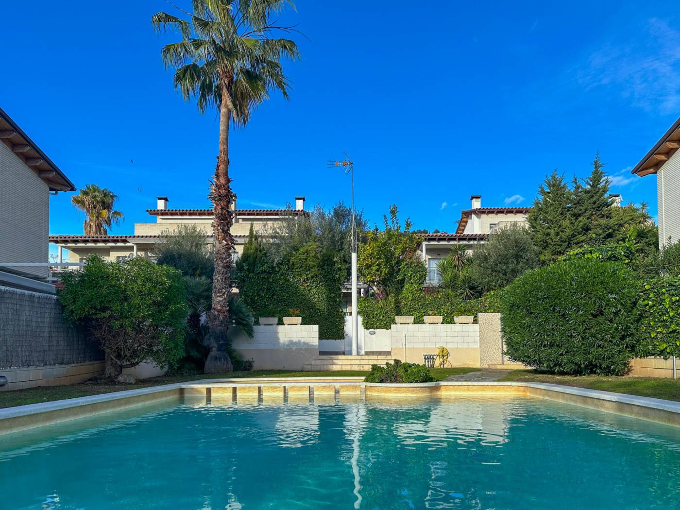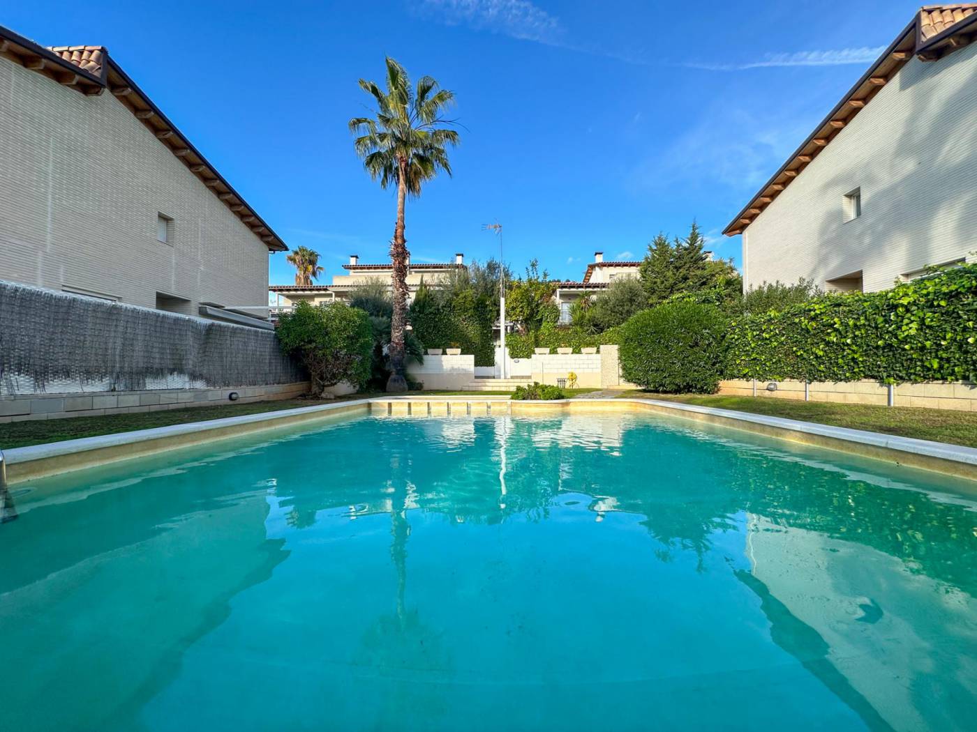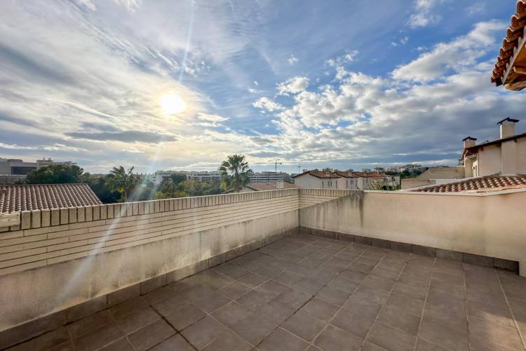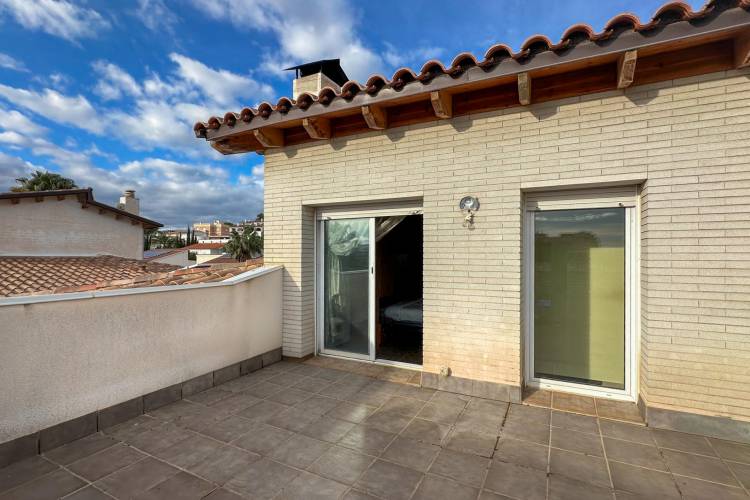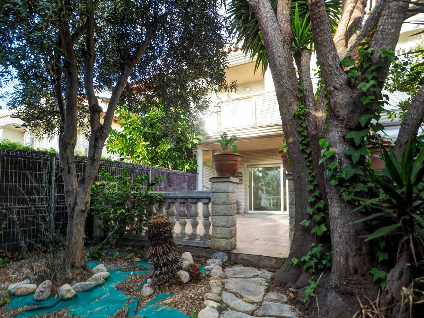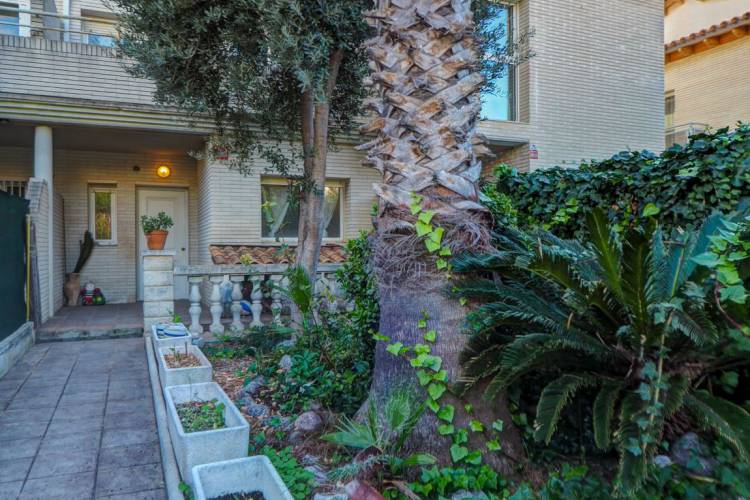 Townhouse with large communal area and sea views in La Levantina, Sitges~~In the La Levantina urbanization in Sitges, we present this wonderful townhouse that stands out for its abundant natural light and perfect south-facing orientation.~~On the main floor, we find a spacious eat-in kitchen, a guest toilet, and a majestic living-dining room with a fireplace and direct access to a pleasant terrace, which leads to a charming private garden that connects to the large communal area, landscaped with a swimming pool.~~On the first floor, there are three bedrooms: two doubles, one single, and a full bathroom.~~On the top floor, there is a spacious suite with a dressing room, a full bathroom, and a large terrace at the bedroom level, from which to enjoy pleasant sea views.~~The property also has another landscaped terrace at its main entrance, and in the parking area, a large garage with a laundry area and space for two cars.~~Among its amenities, the house has radiator heating in all rooms, fitted wardrobes Built-in wardrobes and multiple private terraces invite you to enjoy the Mediterranean climate year-round. Its location is unbeatable, on a level street that allows for easy walking to the center of Sitges, the Aiguadolç marina, and the beach. A fantastic opportunity to live year-round or as a second home in one of Sitges' most sought-after areas.