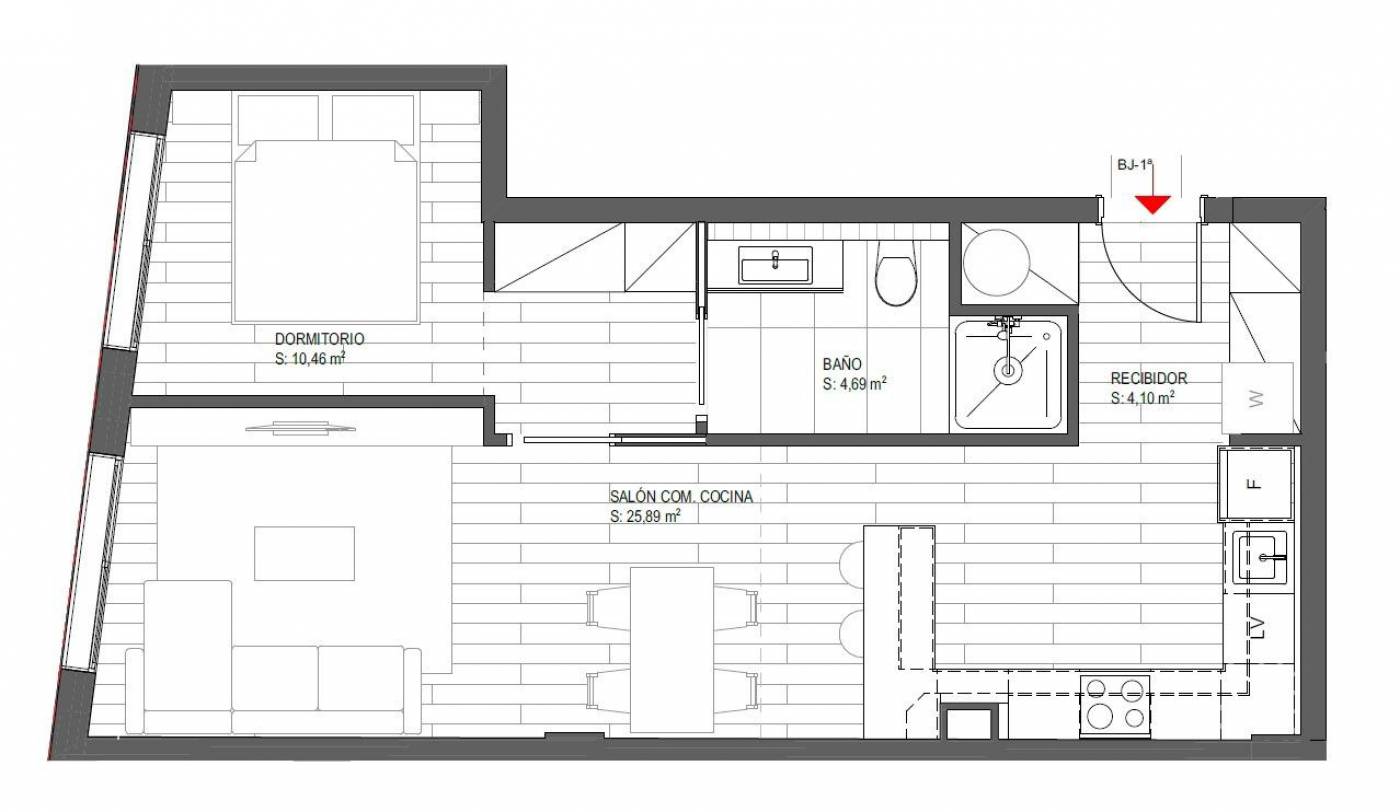 Essència Sitges es la opción ideal para quienes buscan vivir la esencia auténtica de Sitges: a un paso de la emblemática playa de Sant Sebastià, muy cerca del corazón del pueblo y rodeados de todos los servicios, comercios y comunicaciones. Una ubicación privilegiada pensada para disfrutar cada día del estilo de vida mediterráneo sin necesidad de utilizar vehículo.~~Esta exclusiva promoción ha sido concebida para quienes valoran la tranquilidad de una comunidad pequeña, moderna y familiar, donde el diseño, la eficiencia y el confort se unen para crear hogares de calidad superior. Cada detalle ha sido cuidadosamente estudiado para ofrecer un espacio cómodo, luminoso y funcional en cualquier época del año.~~El edificio está compuesto por solo 6 viviendas, con tipologías de 1, 2 y 3 habitaciones, ideales tanto para residencia habitual como para segunda residencia. Algunas unidades cuentan con amplias terrazas privadas perfectas para disfrutar del sol y del clima de Sitges, y otras ofrecen vistas al mar que convierten cada día en una experiencia única.~~Esta planta baja se distribuye en un espacio de salón comedor de 25,89m2 con cocina americana, y una habitación doble con baño completo.~~Un proyecto pensado para quienes quieren vivir Sitges con tranquilidad, calidad y proximidad. Bienvenidos a Essència Sitges.~~Fecha prevista entrega llaves mayo 2027.